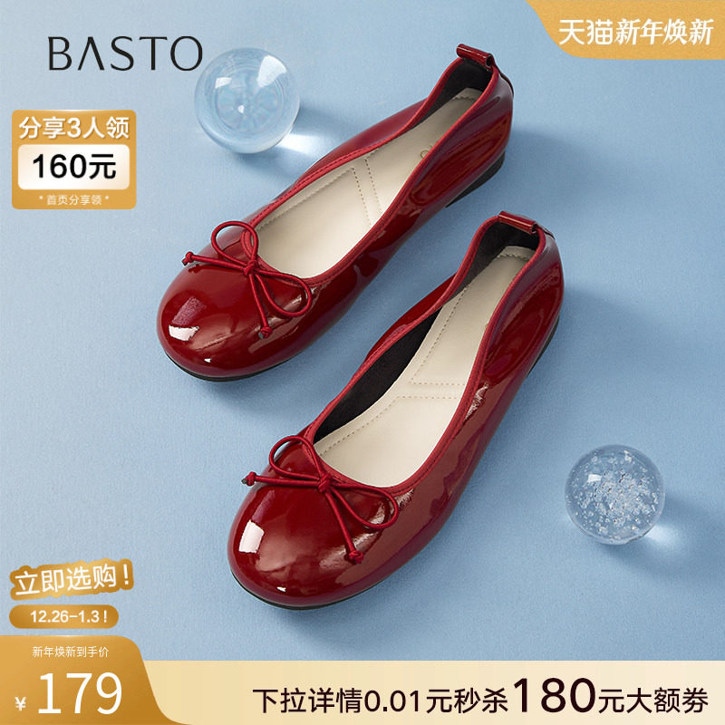 【小樱桃】百思图25秋新款红色单鞋浅口船鞋瓢鞋平底女鞋B8013CQ5