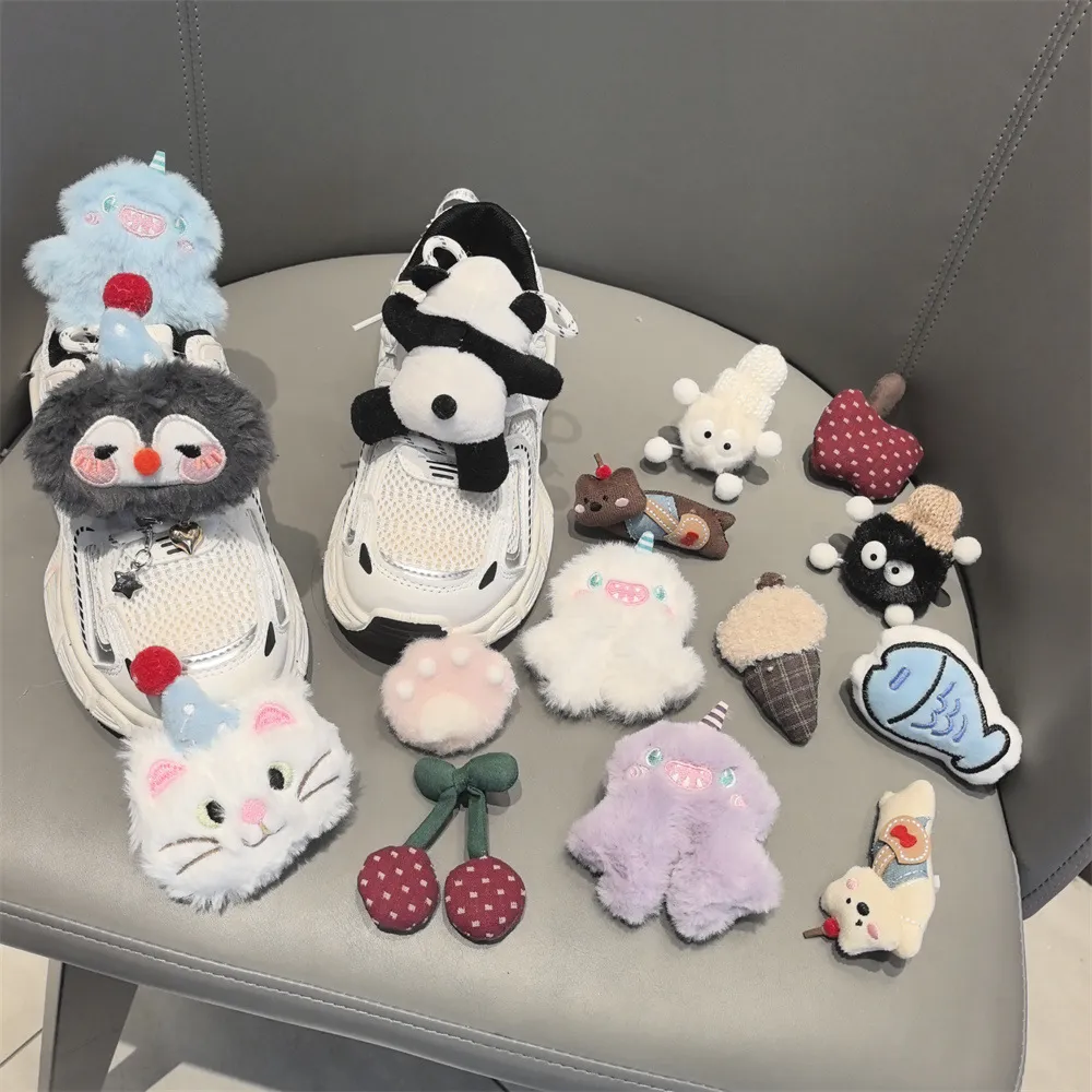 秋冬毛绒鞋带扣立体布艺卡通苹果狗狗企鹅樱桃鞋花马丁靴勃肯装饰