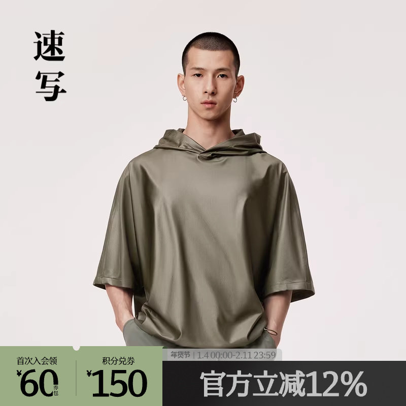 速写奥莱outlets男装春秋折扣新款T恤连帽短袖休闲舒适潮流时尚