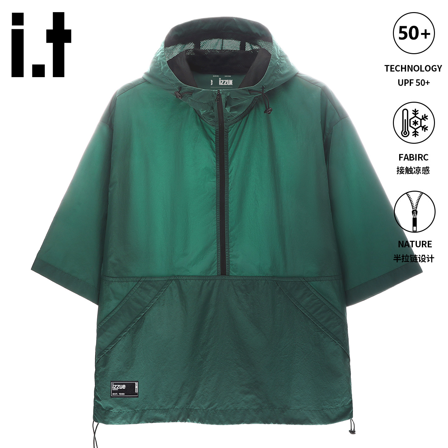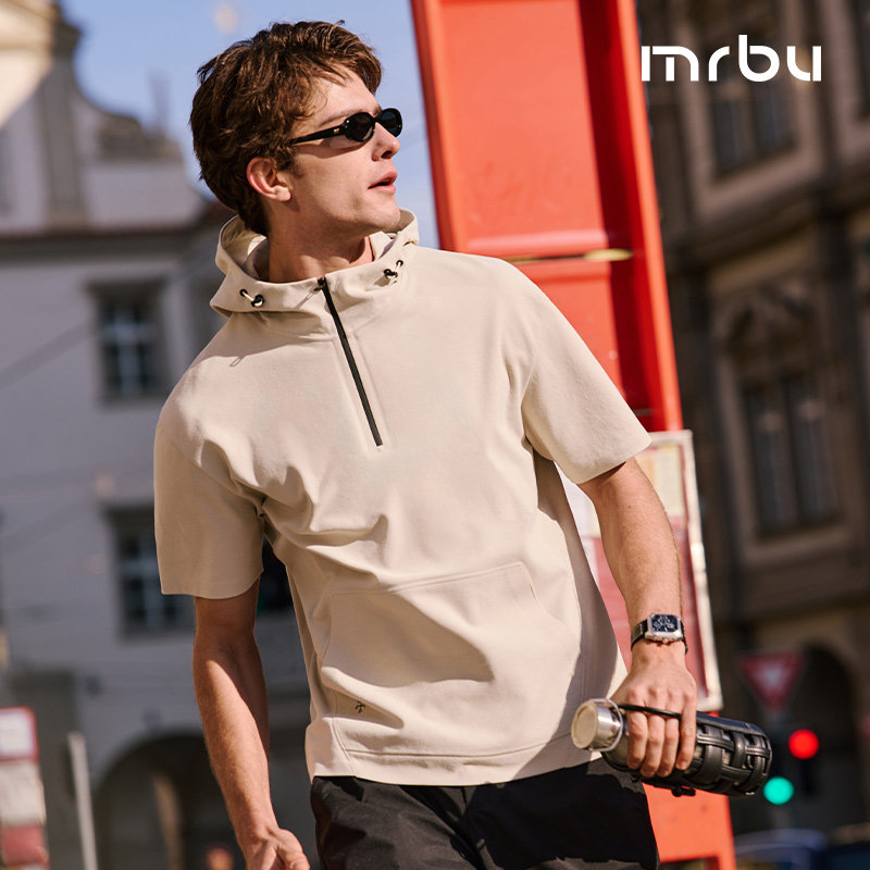 MrBu布先生半拉链连帽短袖T恤男款运动机能风透气时尚GT16326断码