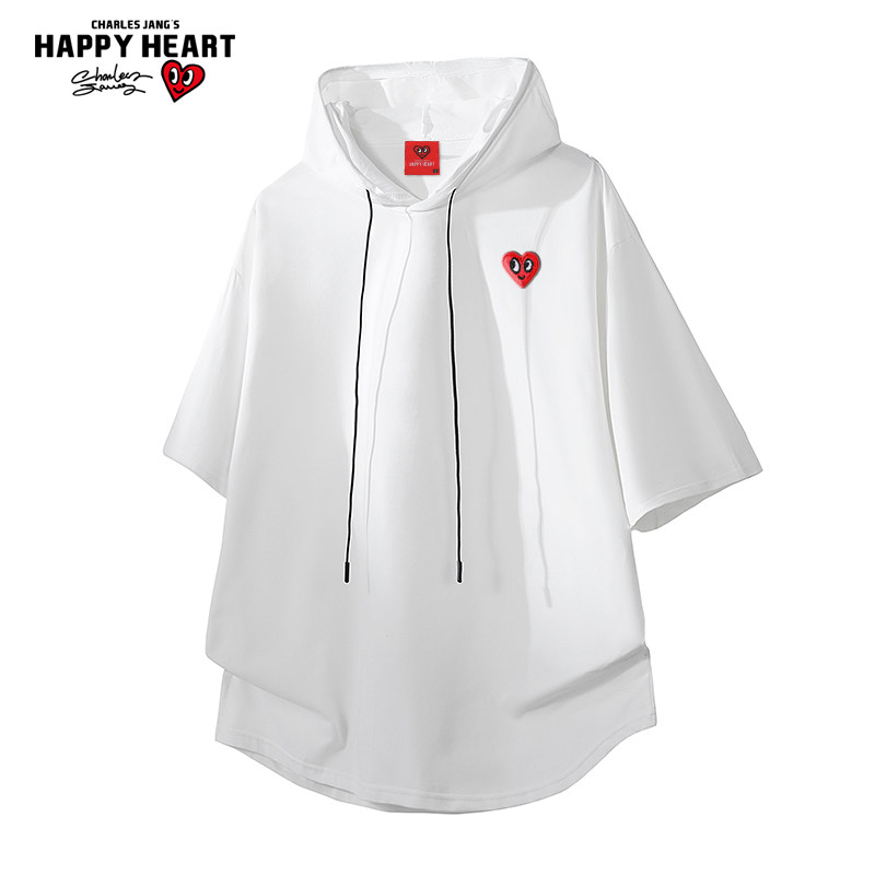 查尔斯桃心 日系防晒抗菌连帽短袖连帽T恤男女夏季速干运动少年感