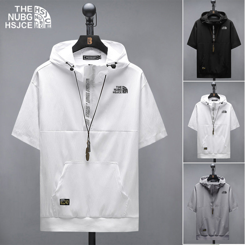 冰丝T恤男短袖连帽衫夏季薄款潮流青年休闲运动半袖卫衣潮牌透气