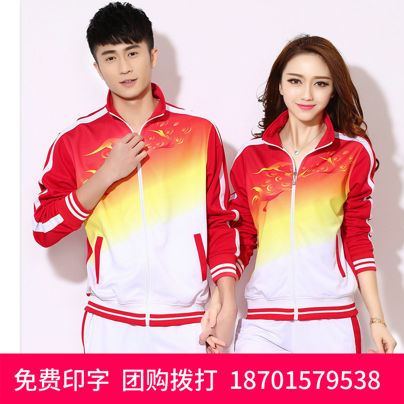 晋冠春秋季运动服套装男女款休闲开衫三件套广场舞校运会团体服装