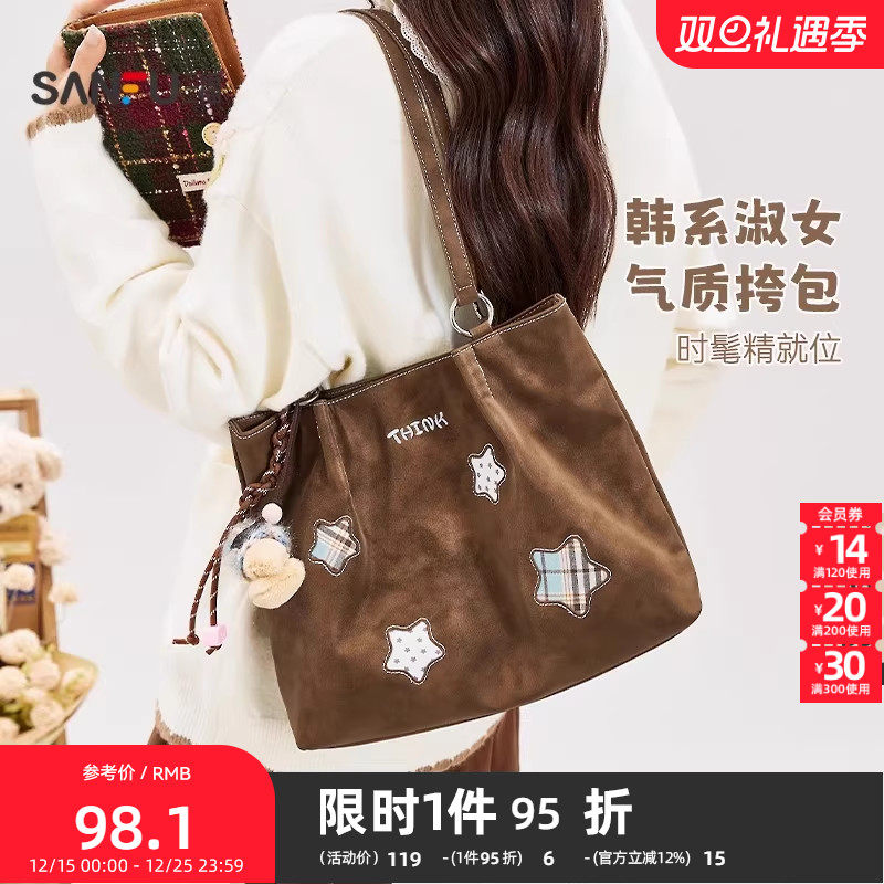 三福托特包女新款牛仔包通勤包包大容量托特包百搭单肩挎包458518