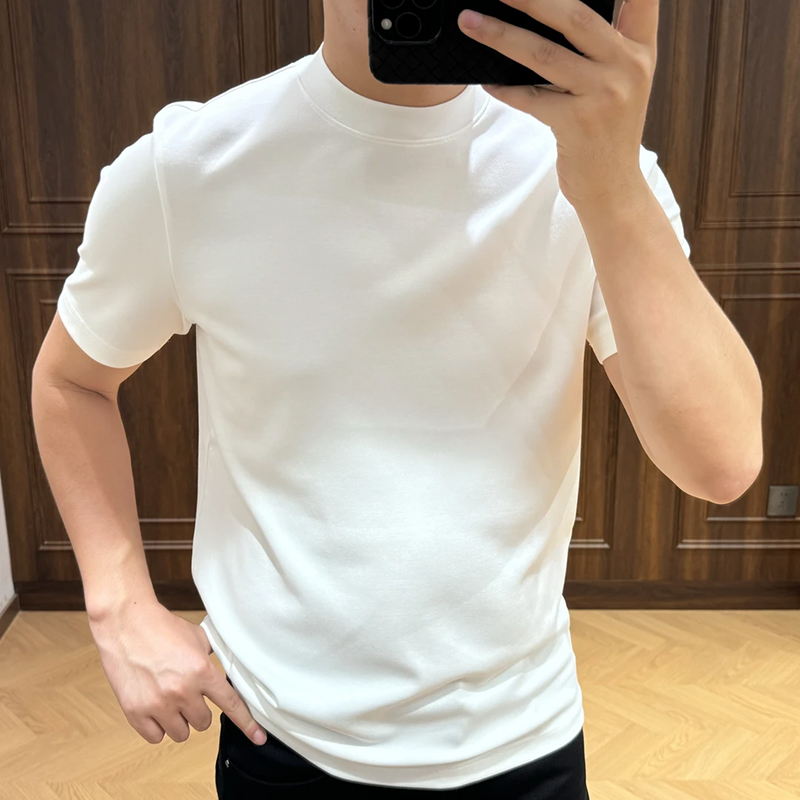 2025新款夏季薄款肌理感纯色圆领男士短袖时尚半袖百搭轻奢T恤男