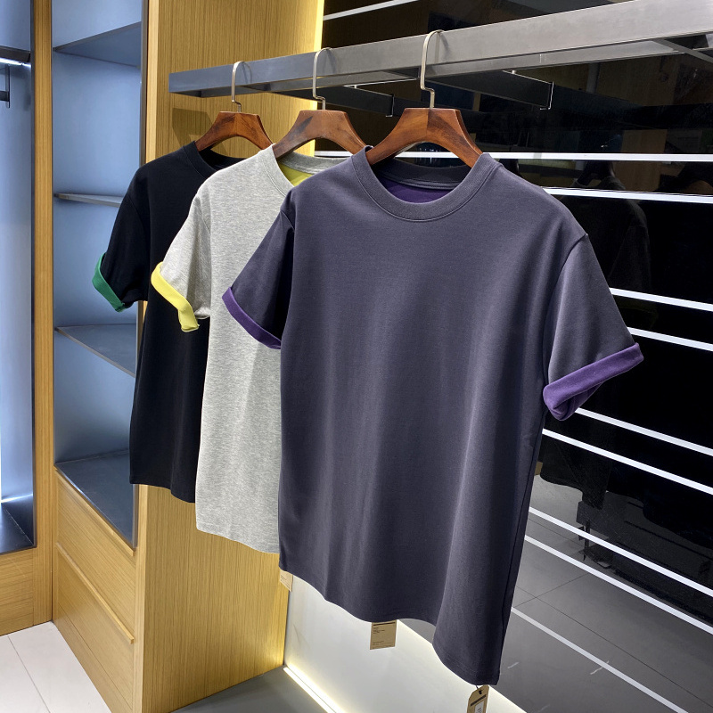 设计师线!双色双面工艺!2025夏季男士舒适弹力百搭休闲短袖T恤