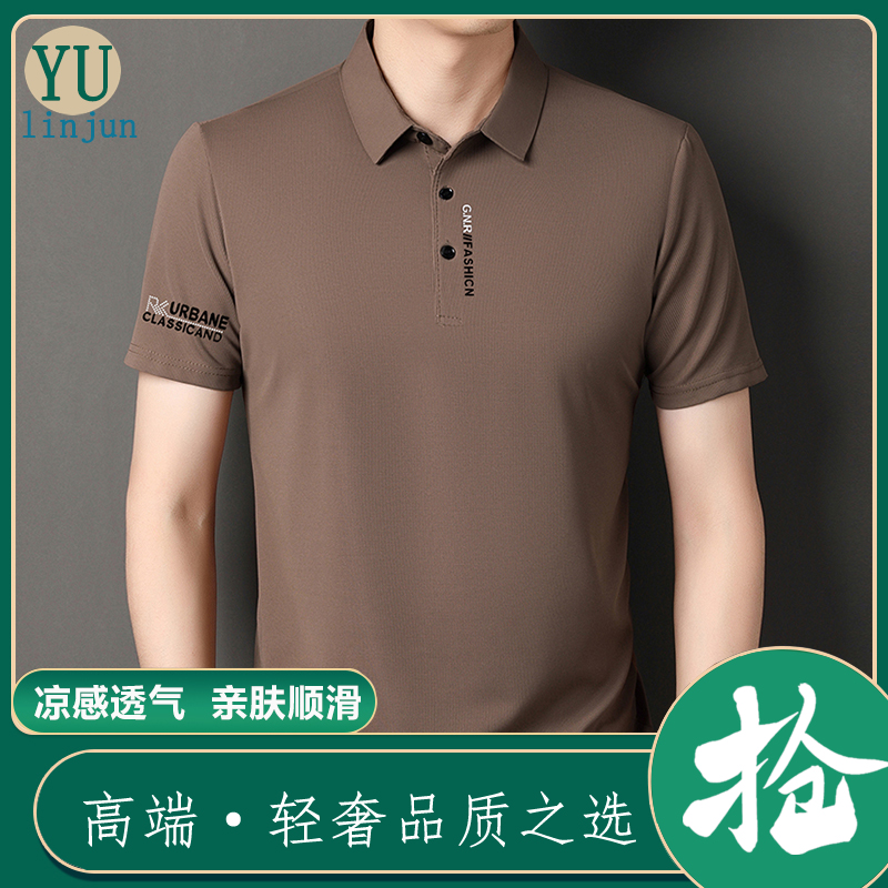 玉临君夏季薄款男士翻领短袖T恤速干半袖POLO衫上衣冰感印花百搭
