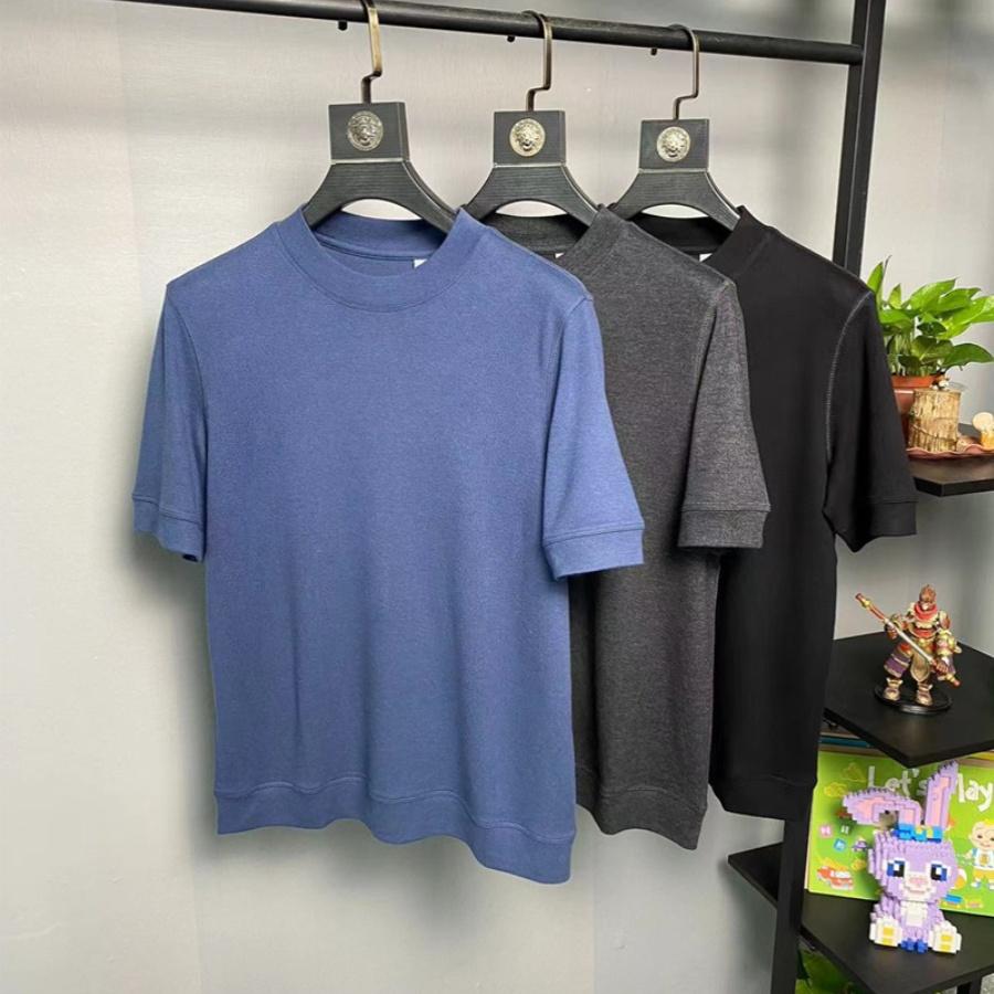精品男装【桑蚕丝羊绒羊毛】短袖针织T恤 丝滑软糯轻薄打底衫圆领
