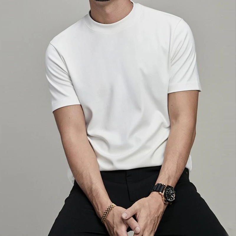 2025年秋季新款简约精品纯色净版短袖T恤百搭半高领休闲上衣ins潮