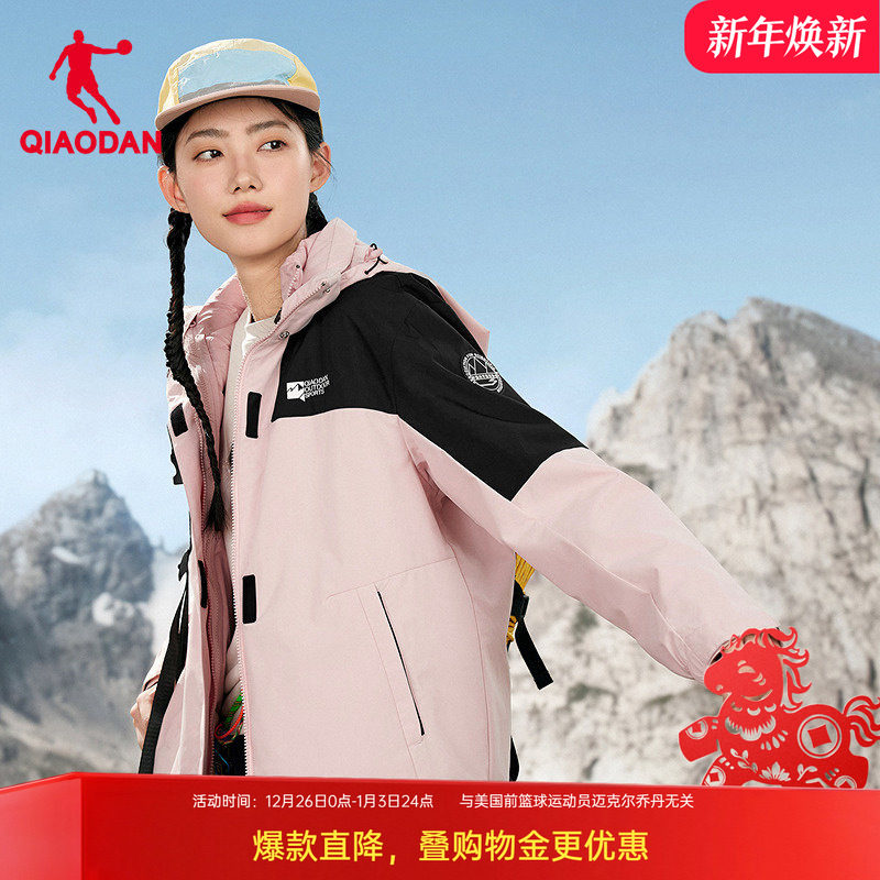 乔丹羽绒服风衣两件套女款梭织厚外套2025冬季新款运动三合一女装