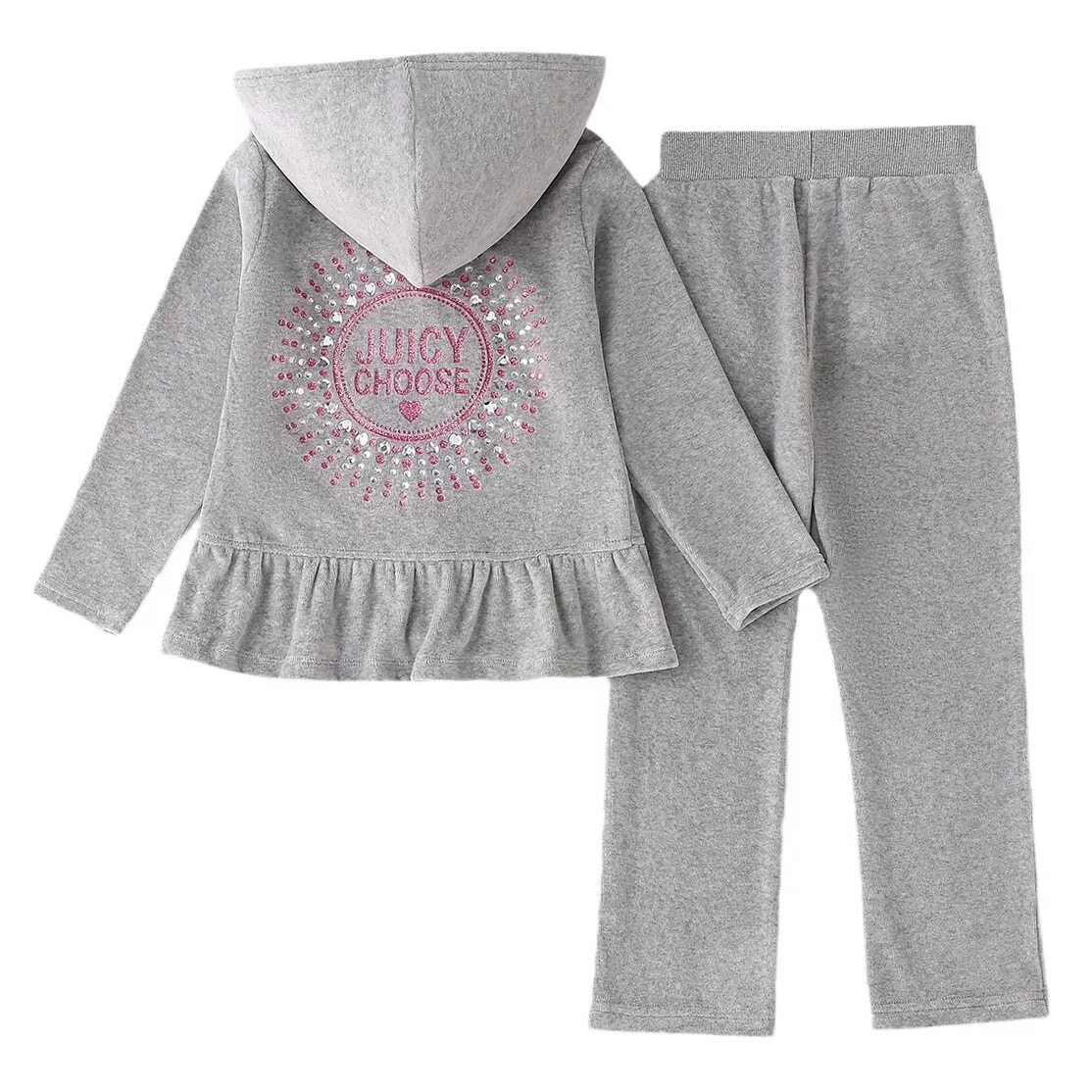 2026新款春秋juicy儿童天鹅绒运动套装女童休闲亲子装微喇裤卫衣