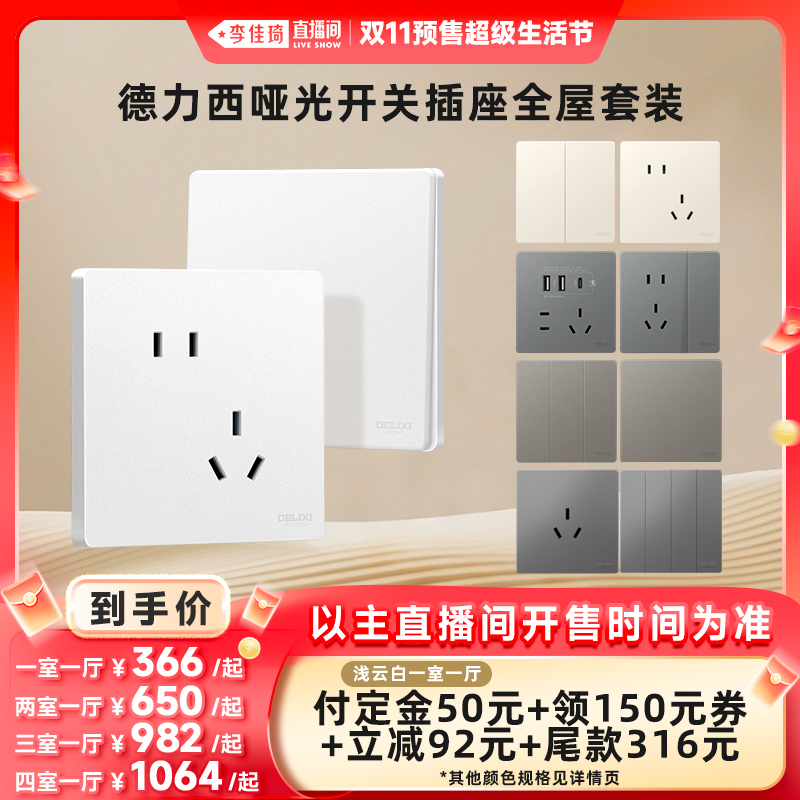 【李佳琦直播间生活节付定金】德力西旗舰店827哑光开关插座套餐