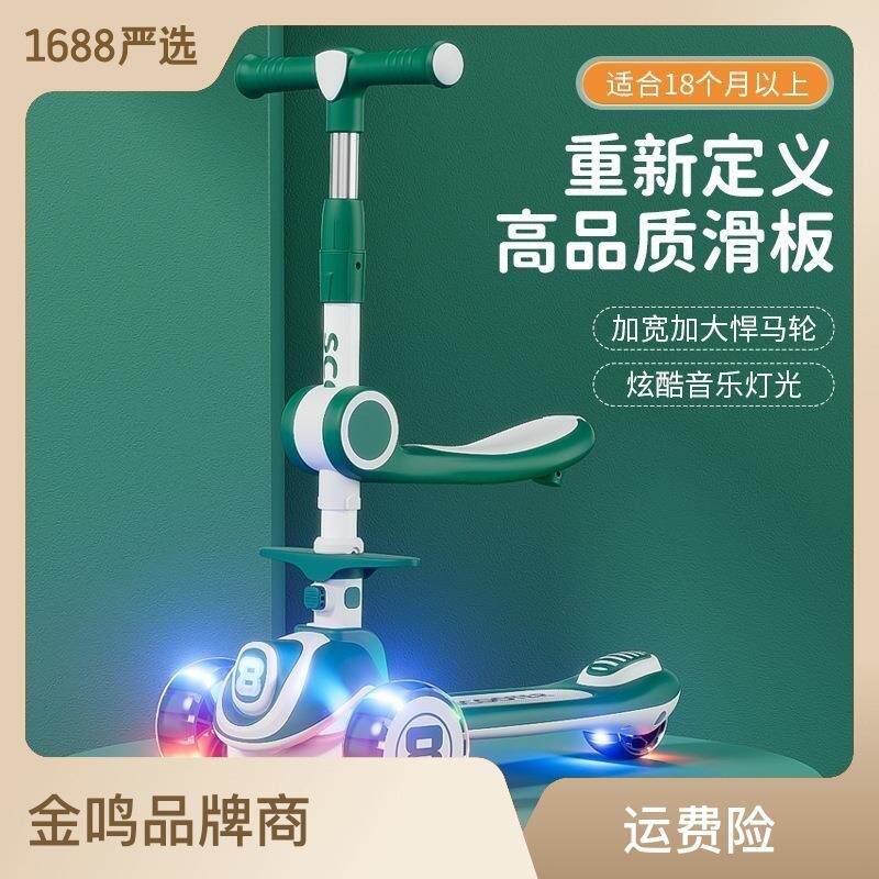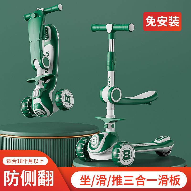 儿童滑板车三合一三轮闪光音乐溜溜车折叠单脚可坐踏板宝宝滑滑车