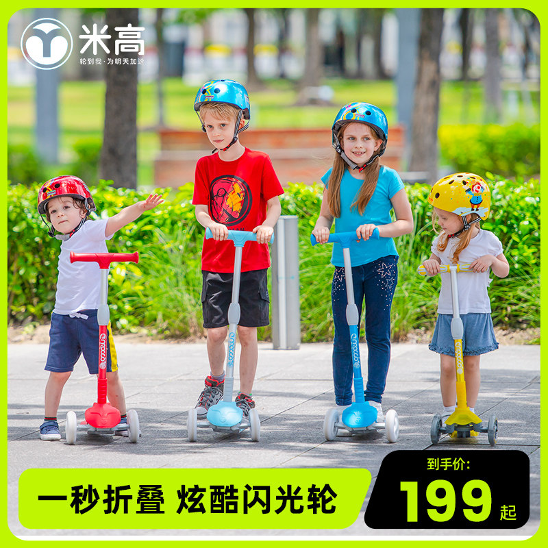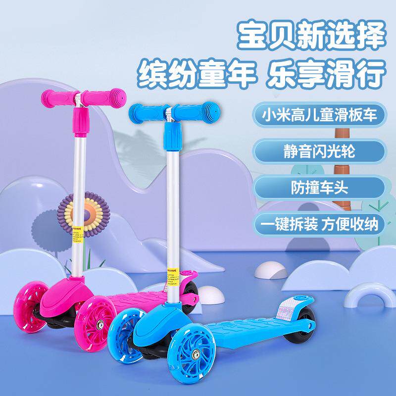 米高儿童滑板车1-3-12岁 三轮初学可调节男女宝宝闪光轮折叠款