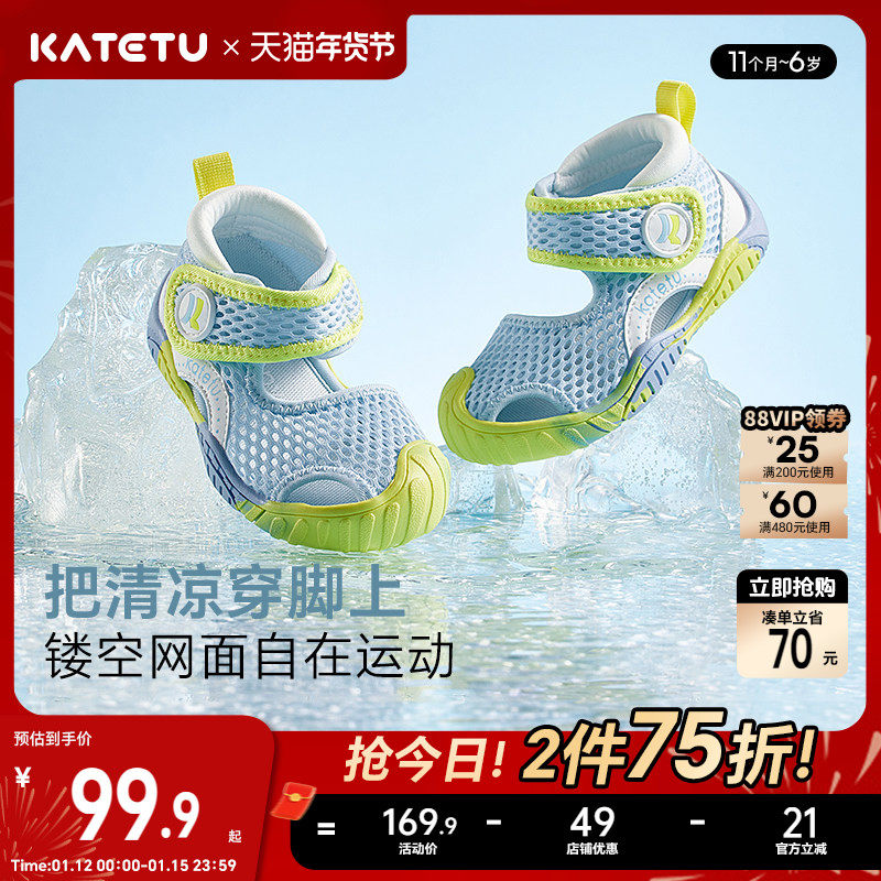 卡特兔儿童凉鞋男童学步婴儿鞋包头软底防滑沙滩鞋女童软底机能鞋