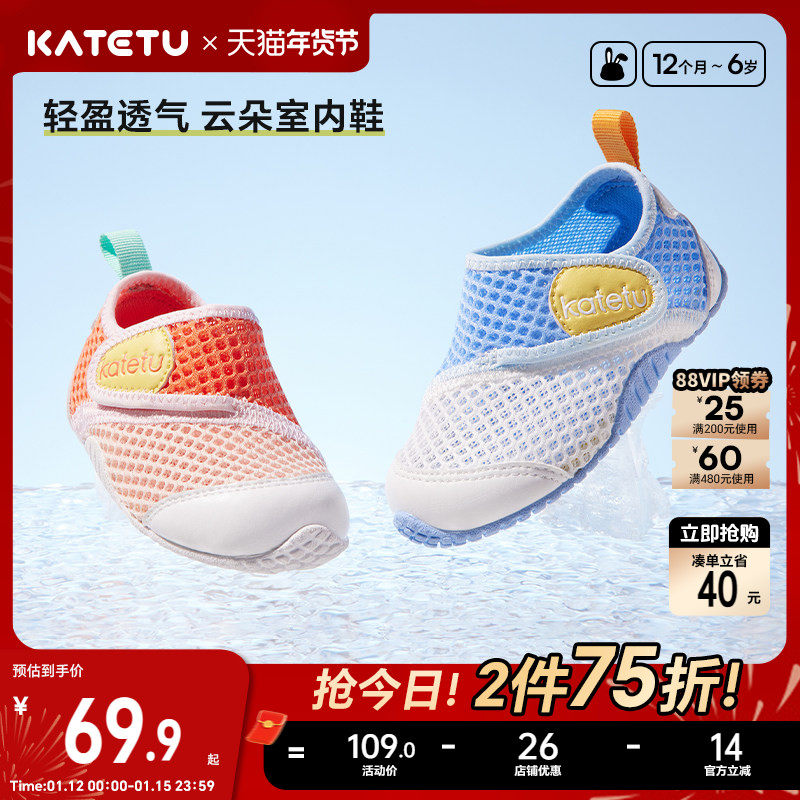 卡特兔儿童凉鞋女童学步运动室内鞋男童防滑透气宝宝软底鞋子童鞋