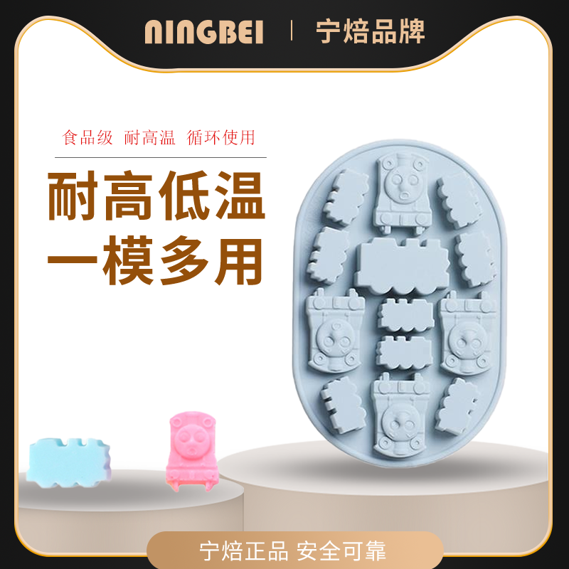 宁焙 13连小火车硅胶模具辅食盒布丁冰模diy烘焙烤箱蛋糕模具