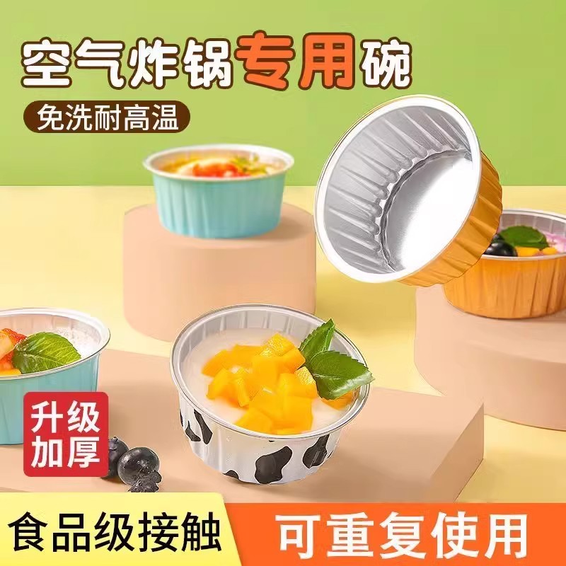 锡纸碗空气炸锅专用耐高温可重复使用家用小烤箱蛋糕模具布丁盒杯