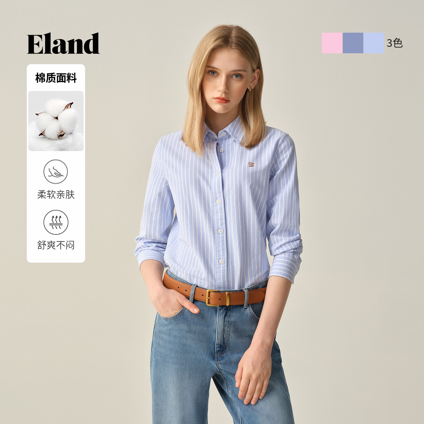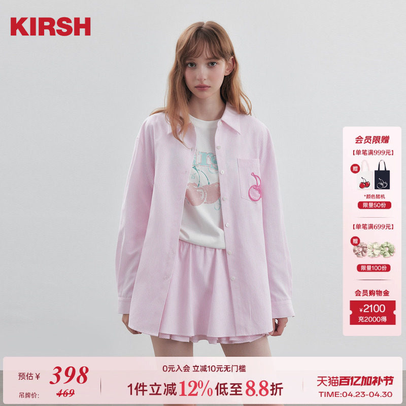 樱桃KIRSH 韩系条纹刺绣粉色衬衫女2026新款休闲百搭长袖衬衣上衣