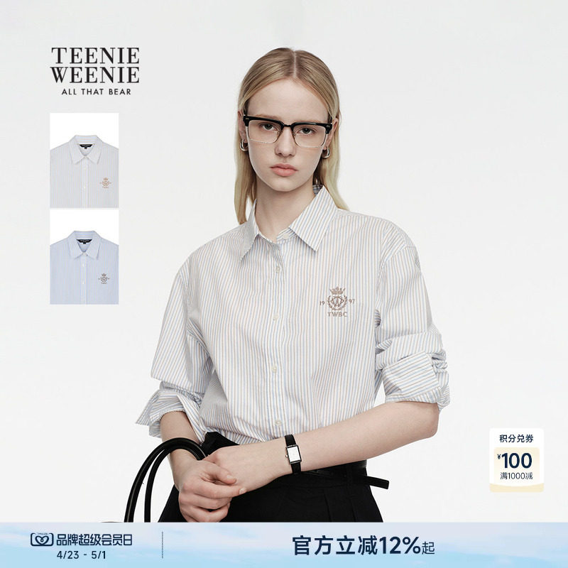 TeenieWeenie小熊女装衬衫26春夏新款学院风复古时尚条纹刺绣衬衣