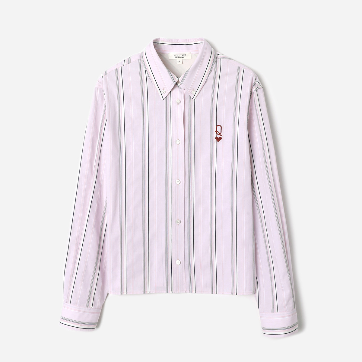 *WCS09038 茉莉雅集 M1U系全棉字母刺绣翻领条纹短款长袖衬衫女