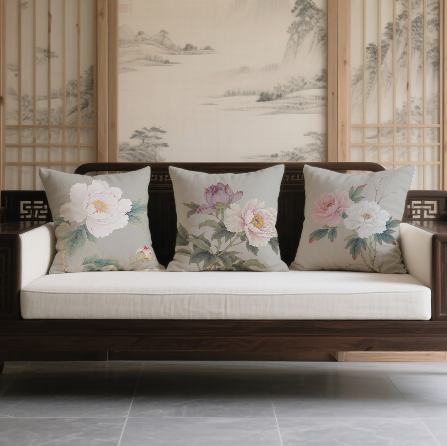 新中式国花牡丹客厅红木沙发抱枕套富贵花开靠垫书房椅子靠背枕头