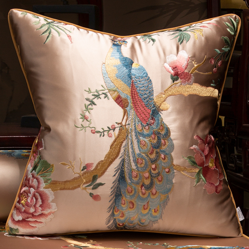 中式抱枕客厅红木沙发靠垫床头靠背垫腰垫中国风绣花靠枕套不含芯