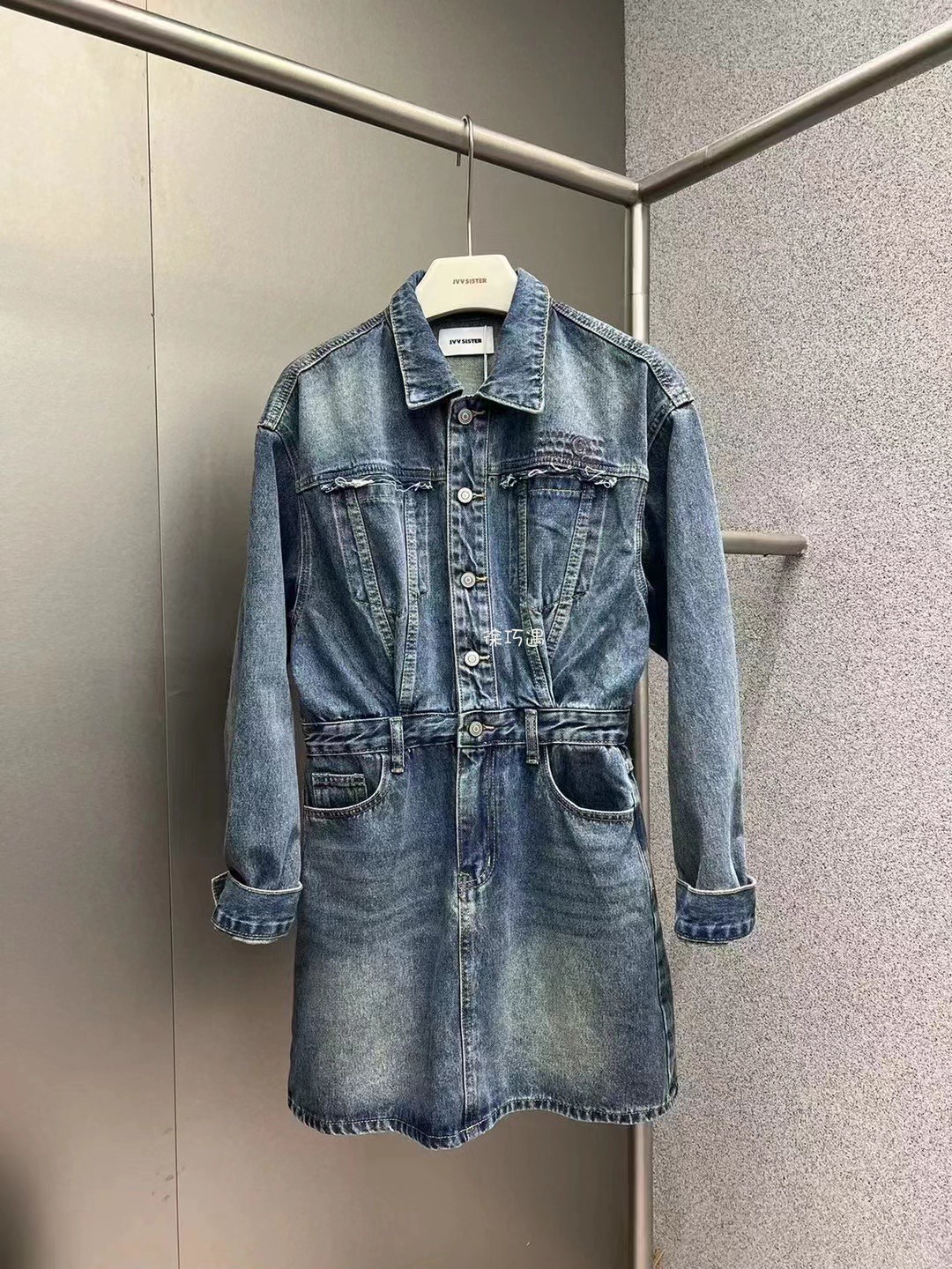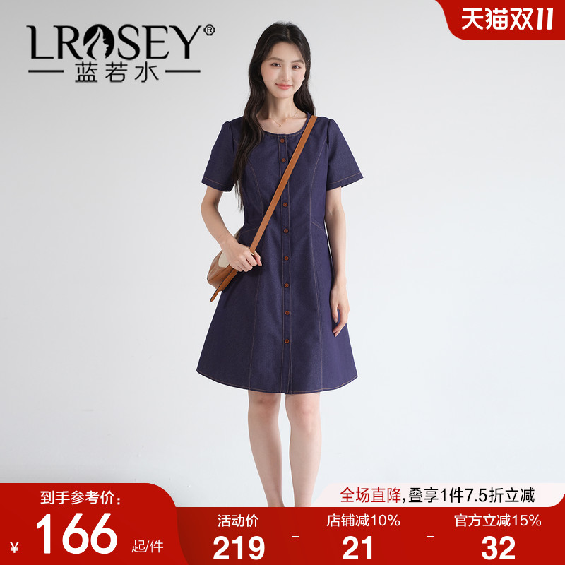 【复古双口袋牛仔连衣裙】蓝若水大码2025夏装新款修身韩版A字裙