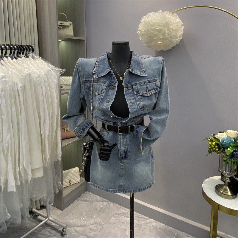 韩版御姐风复古小个子牛仔连衣裙高级气质感收腰显瘦A字包臀裙子