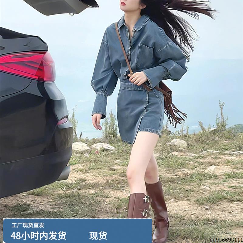 复古长袖工装牛仔连衣裙女秋季2025新款韩版百搭收腰显瘦a字短裙