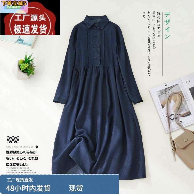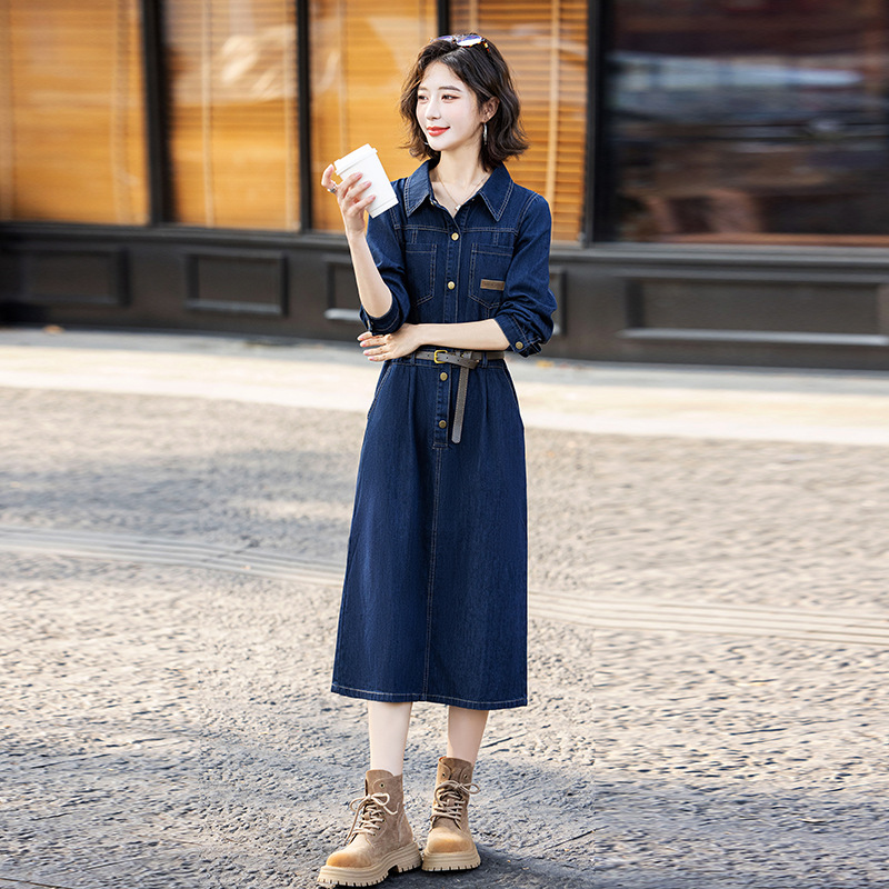 复古牛仔连衣裙女秋季新款韩版气质显瘦收腰A字裙长袖衬衫短裙子