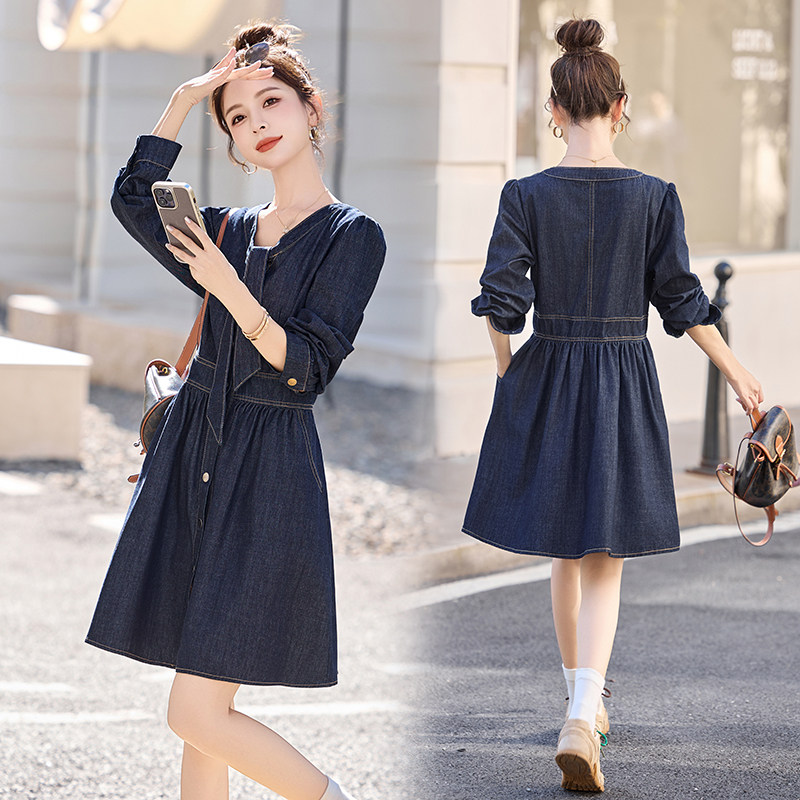 春连衣裙女2025夏秋新款韩版大码修身牛仔裙显瘦宽松牛仔裙a字裙