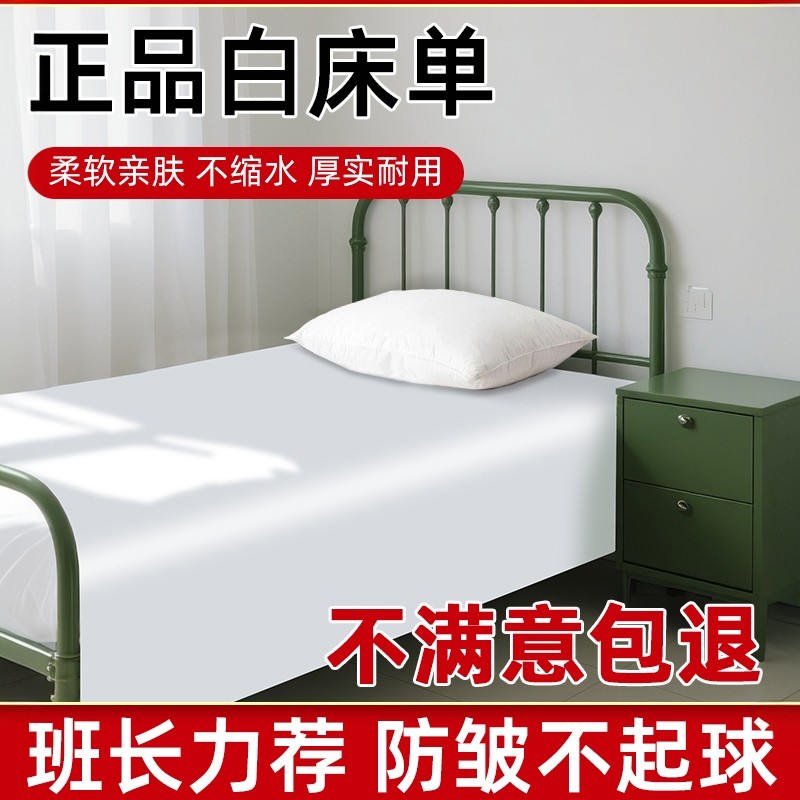 正品制式白床单防皱透气不起球被单内务加厚白色垫单单人床单制式