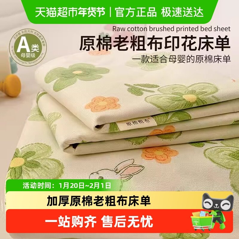 纯棉老粗布床单单件双人100全棉单人宿舍加厚被单枕套三件套秋冬