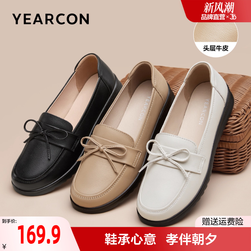 意尔康妈妈鞋2025新款真皮宽脚舒适不累脚软底豆豆单鞋女大码皮鞋