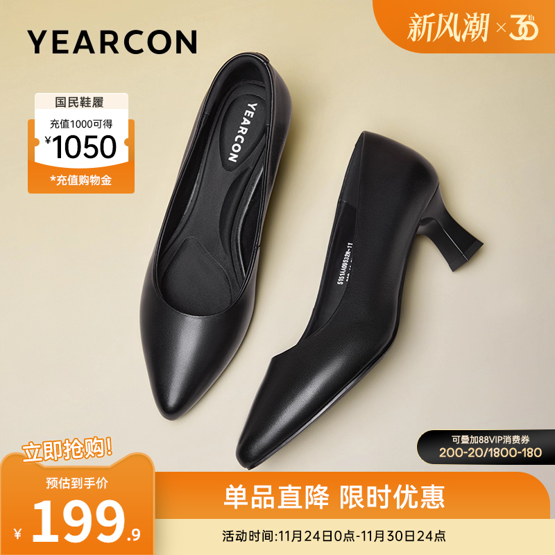 意尔康女鞋2025新款单鞋真皮尖头高跟气质通勤女士职业工作鞋面试