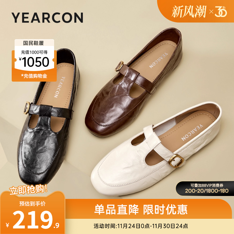 意尔康女鞋2025秋季羊皮乐福鞋T型玛丽珍真皮单鞋低跟小皮鞋软面