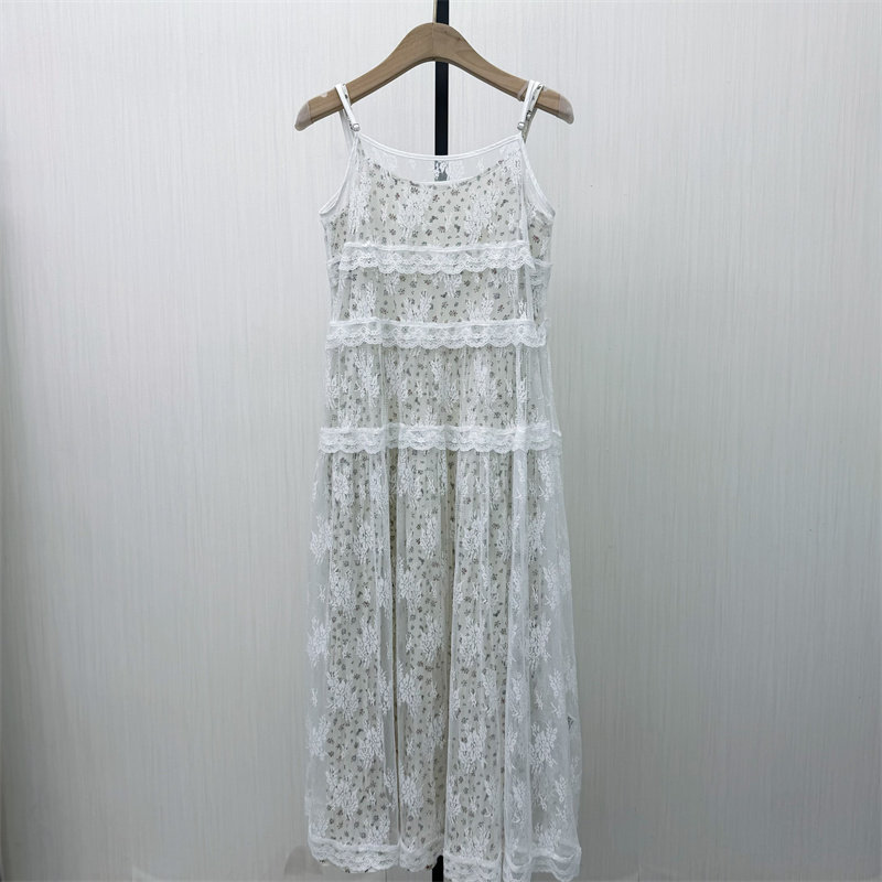 S●2026春季新 法式碎花吊带连衣裙女气质度假风无袖网纱长裙908