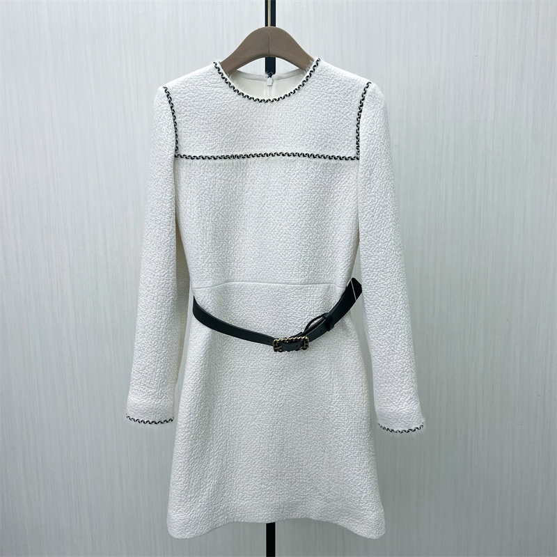 欧S●2026春季新 小香风长袖连衣裙女时尚气质收腰显瘦a字裙4860