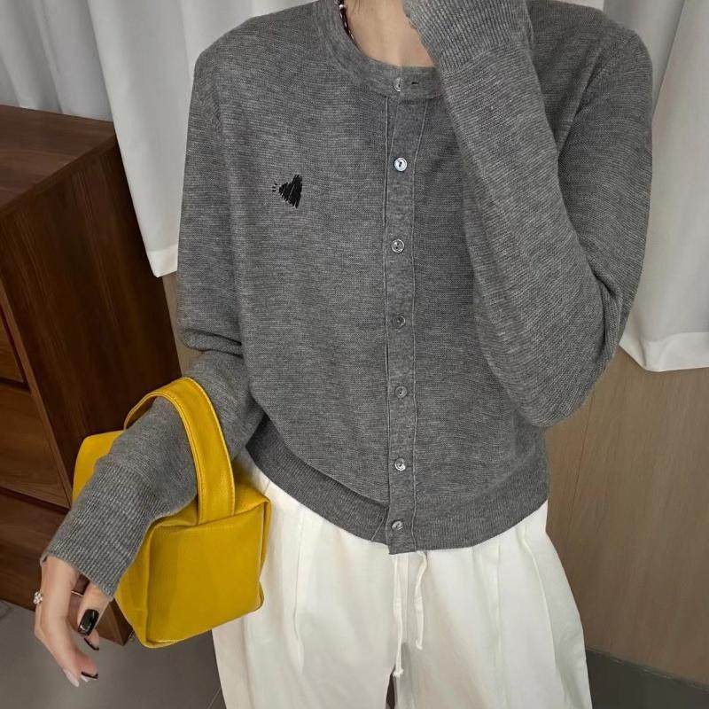 欧洲站2025年春装新款时尚撞色爱心单排扣羊毛针织开衫女韩版上衣