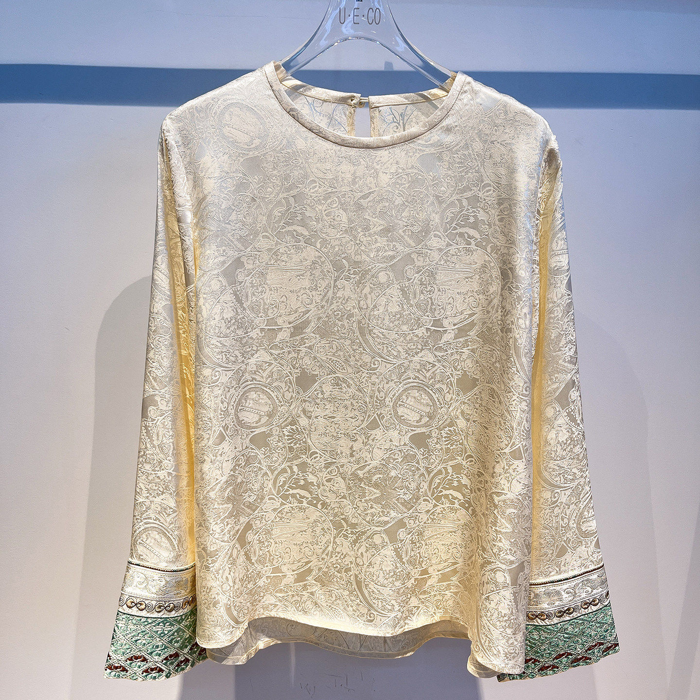 欧洲站春装新款新中式国风高奢提花袖口刺绣圆领百搭小衫上衣女潮