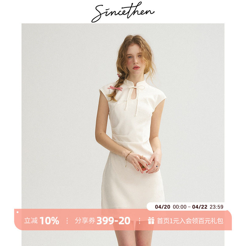 sincethen 新中式连衣裙短款收腰裙子改良旗袍裙白色小个子礼服女