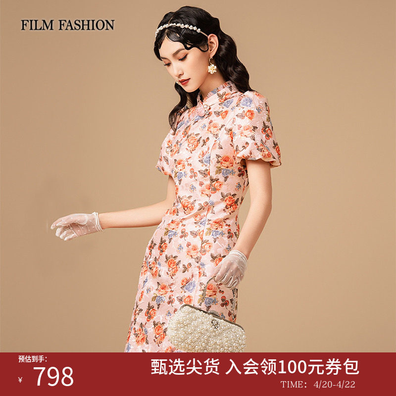 一电影一时装夏季新款新中式改良泡泡袖设计小众短款旗袍连衣裙女