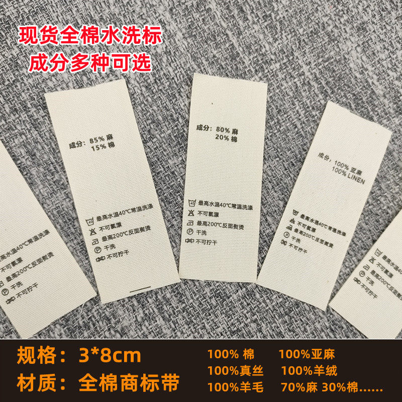 全棉通用裤子现货纯棉水洗标棉麻成份标尺码标棉带码标童装耐水洗