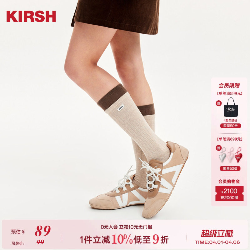 樱桃KIRSH韩系休闲双罗口撞色小腿袜女2026春夏精致织唛长筒袜子