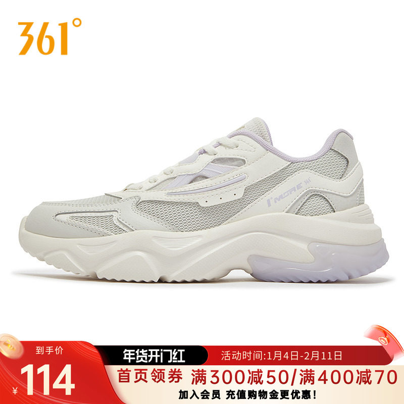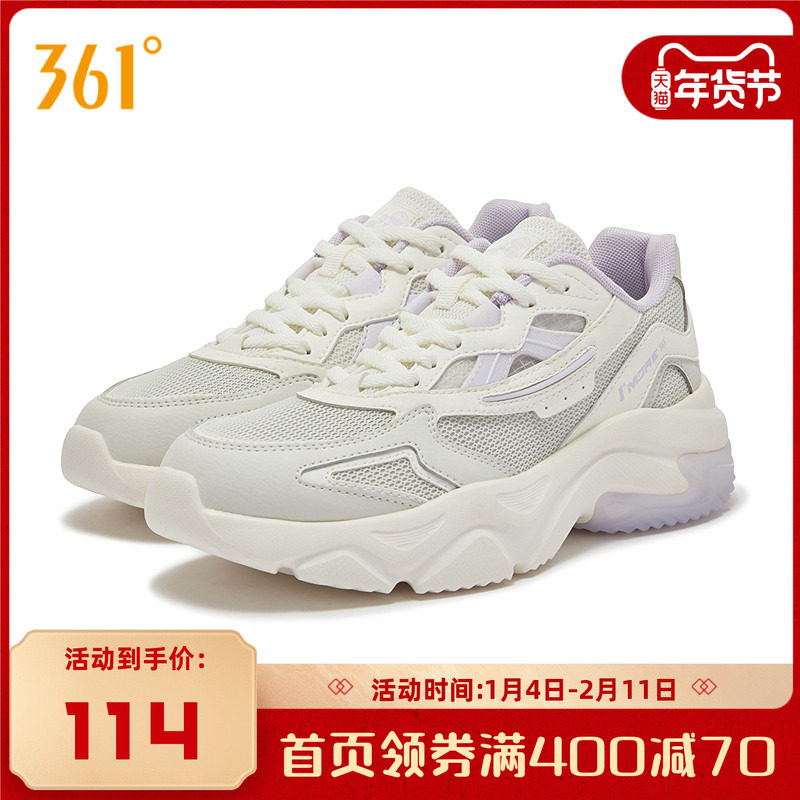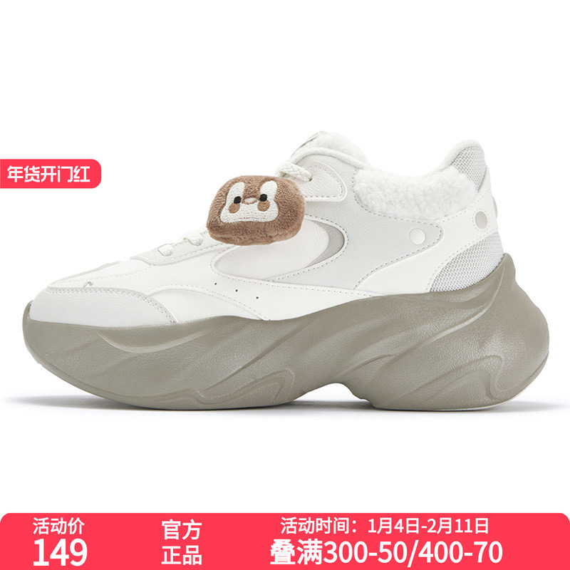 361°女鞋天鹅鞋2025冬季新款舒适复古老爹鞋银色薄底休闲运动鞋