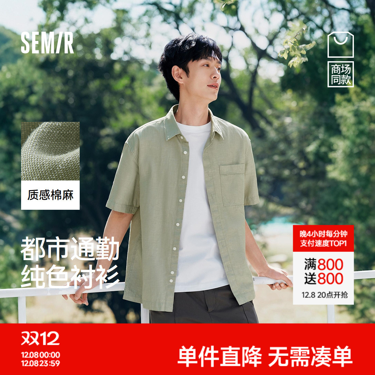 [商场同款]森马短袖衬衫男棉麻衬衣纯色上班通勤2025夏装新款外穿