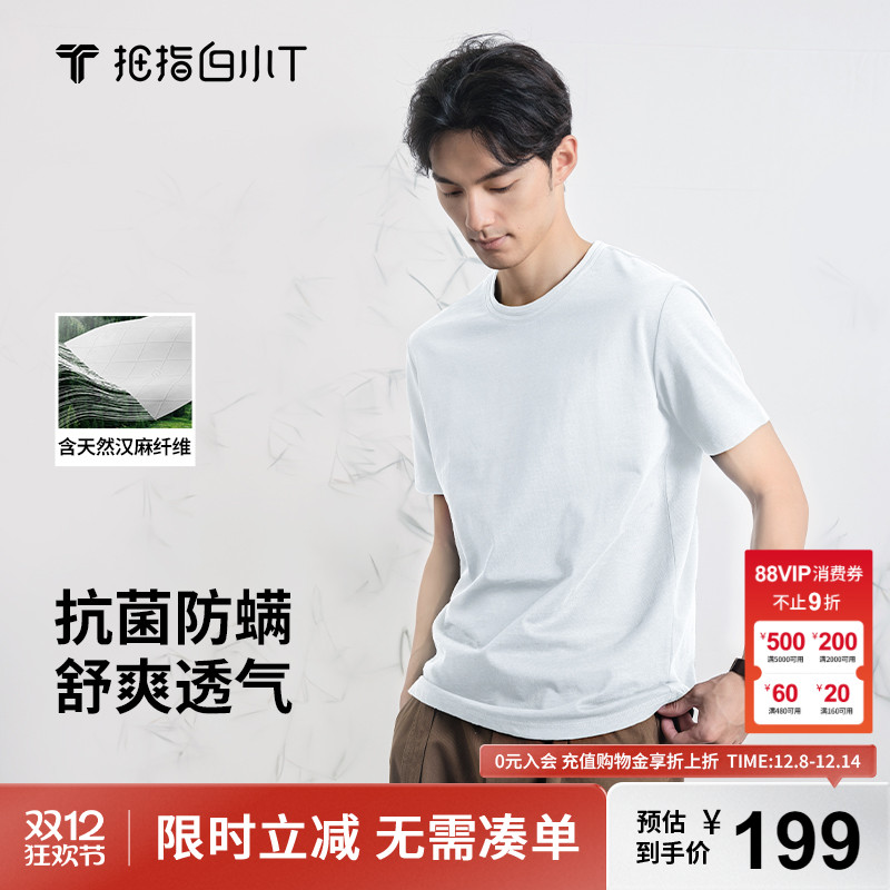 拇指白小T棉麻圆领短袖T恤男士2025夏季新款3A抗菌防螨重磅棉上衣
