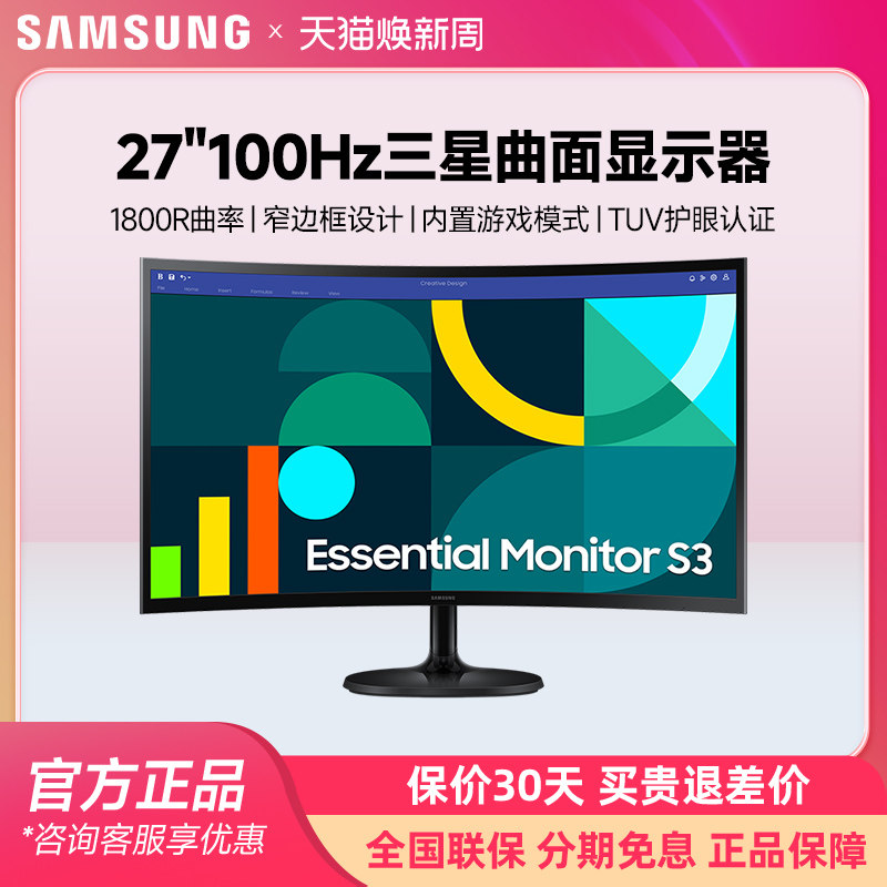 三星27英寸曲面显示器电脑高清液晶台式办公游戏曲屏幕S27D360GAC