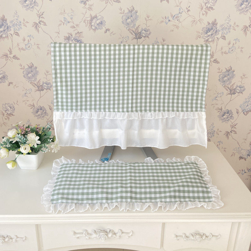 色织格子液晶电视电脑盖布防尘罩套一体机台式曲屏显示器装饰遮布